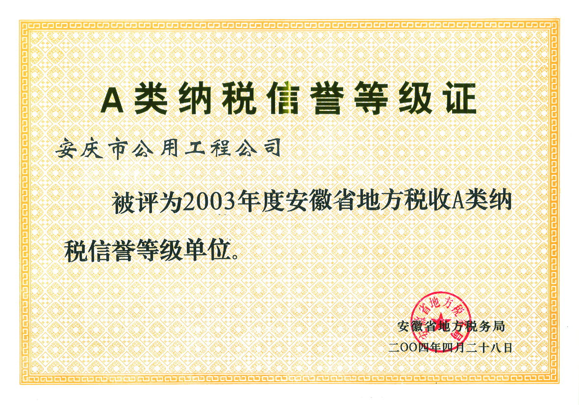 A類納稅信譽(yù)等級證