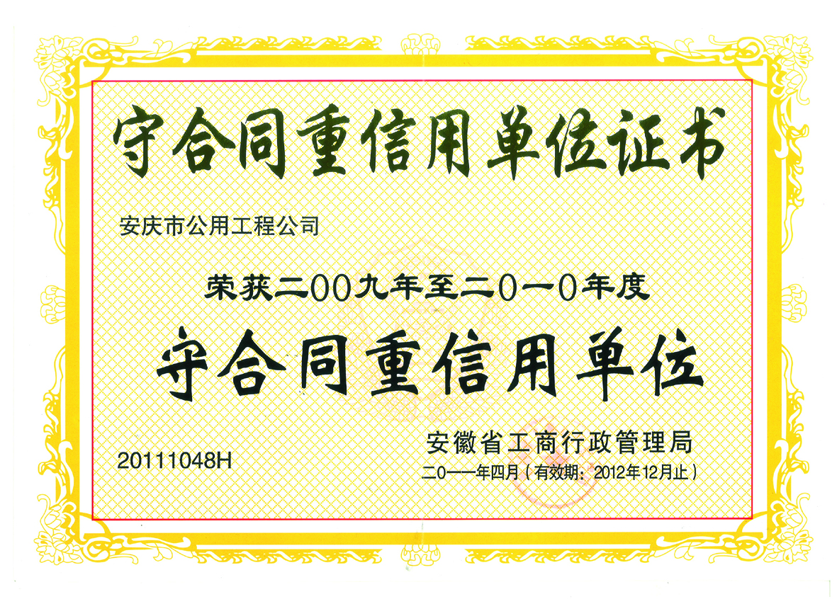 守合同重信用先進(jìn)單位證書