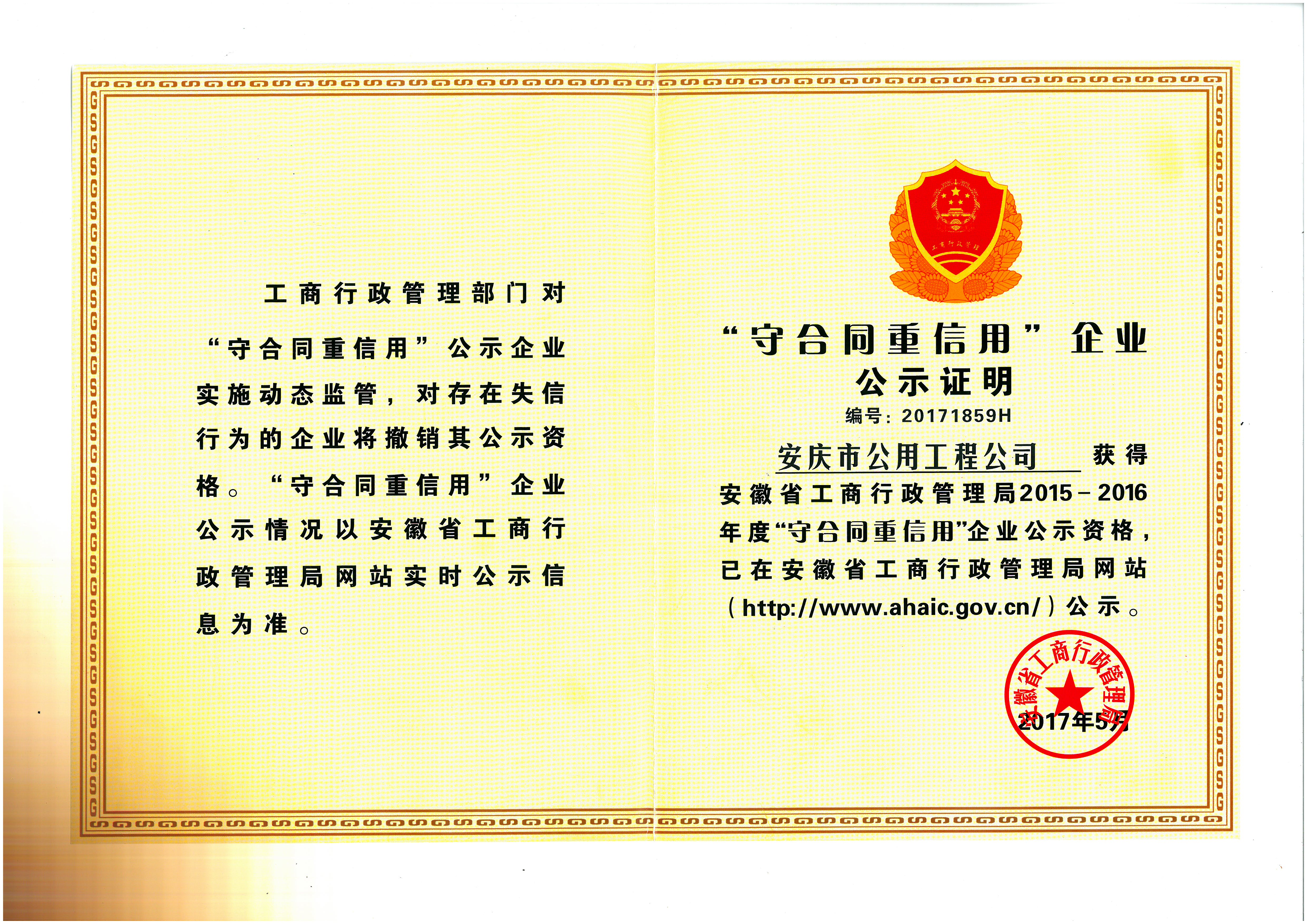 守合同重信用企業(yè)公示證明2015-2016