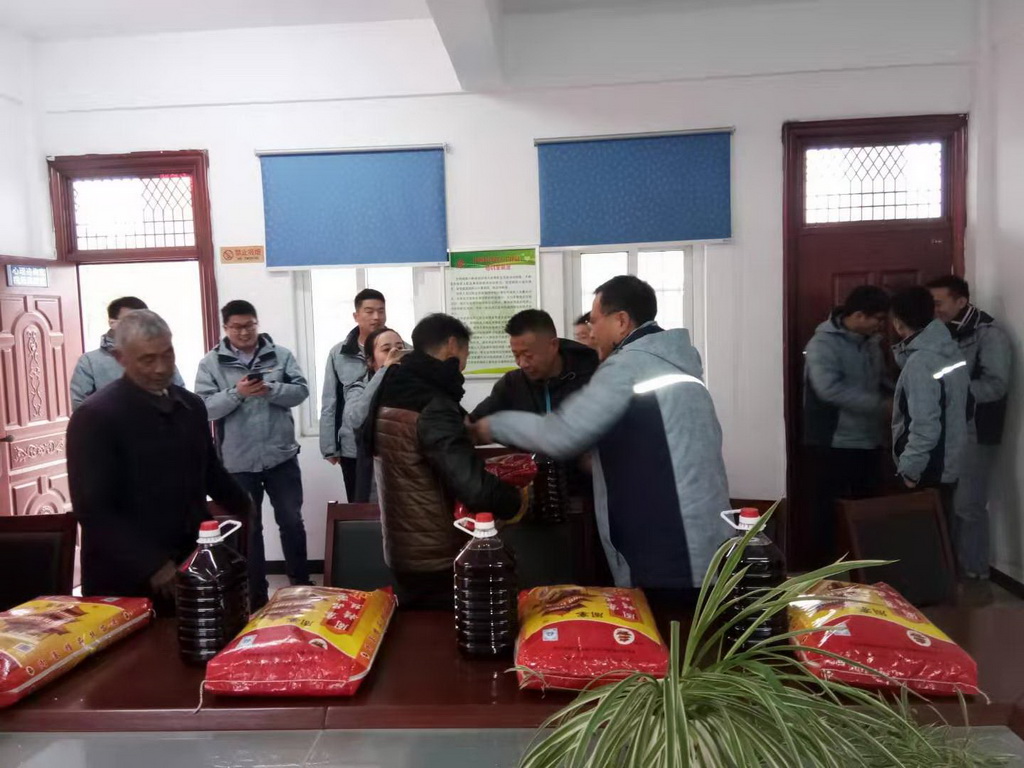 1月15日,大雪飄然而至,氣溫驟降,但是對(duì)于肥西縣李祠、葉崗社區(qū)的困難群眾來說卻是個(gè)暖心的日子。公用工程公司大官塘項(xiàng)目部黨員與合肥供水集團(tuán)重點(diǎn)辦黨支部聯(lián)合開展“慰問建設(shè)地困難群眾”黨日活動(dòng),向當(dāng)?shù)乩щy村民送去米、油、慰問金等,關(guān)心困難群眾的生活狀況及身體情況,并提前致以新春佳節(jié)的問候與祝福。